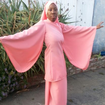 All that dress needs is to lose the belt and a MANDARIN COLLAR. I would probably just use the material and make our hijab, tunic and pantskirt.