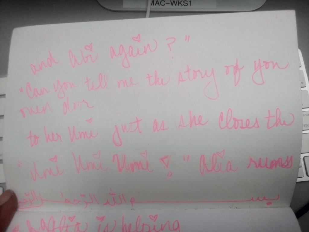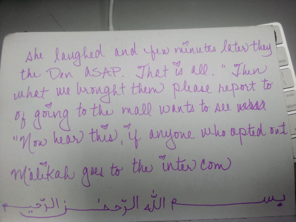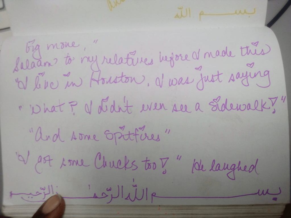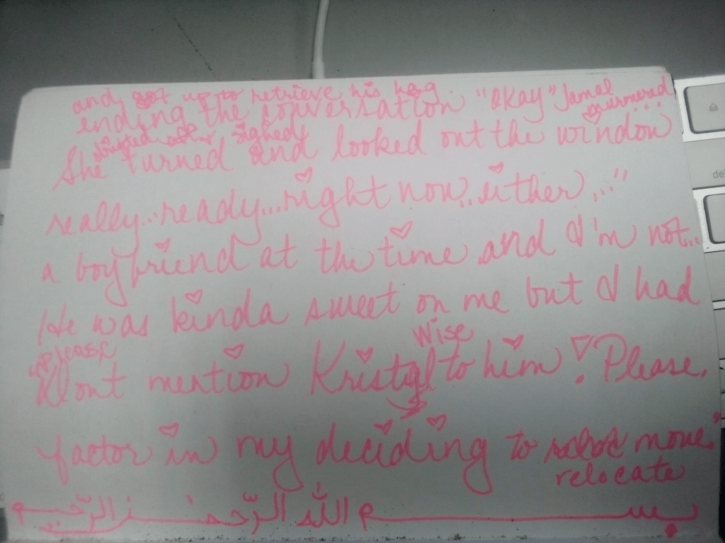 I lost all of my other stories (my three-part autobiography, a hip-hopera, a BLACK FAIRY TALE and a short story) In Sha Allah, I will rewrite them. Now that Iʻve gotten the bug again.