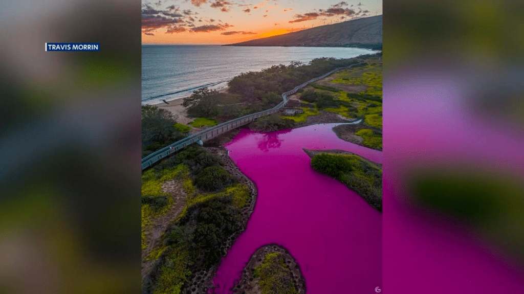 HAWAII – One of the ponds here in Hawaii has turned MAGENTA!!!